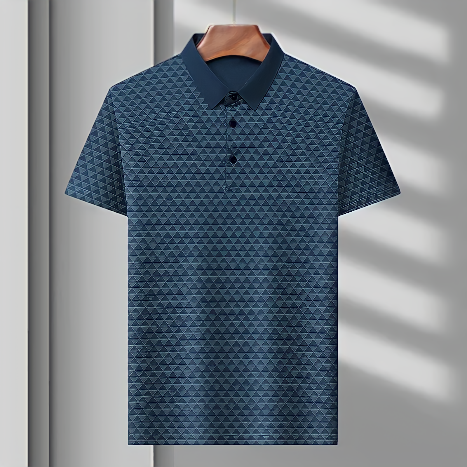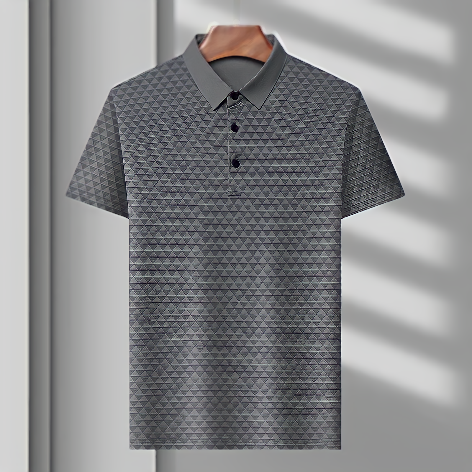 Dive into summer with this ice silk polo that's as chill as your laid-back vibes. Rocking an eye-catching geometric pattern and seamless stitching, this shirt promises comfort and flair, keeping you moisture-wicking and on-trend.