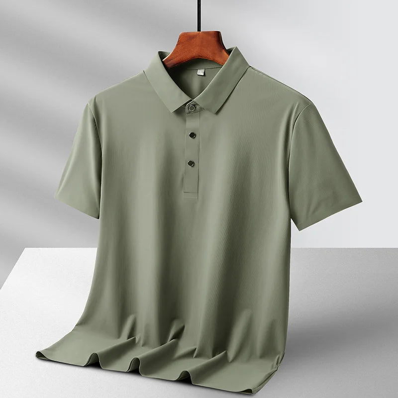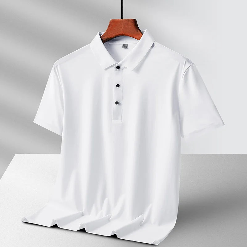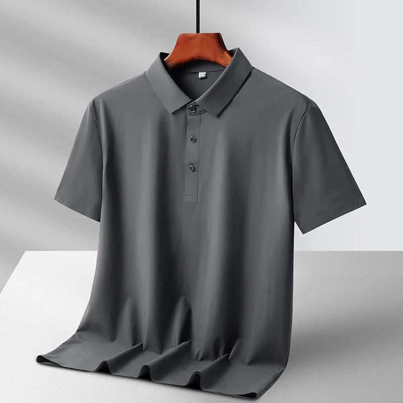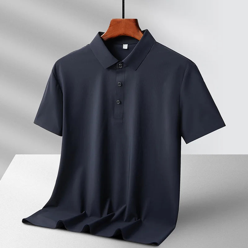 Breathable ice silk polo shirt, expertly designed with seamless stitching for ultimate comfort. Perfect for both casual and formal occasions, its moisture-wicking properties ensure you stay cool and dry all day long.